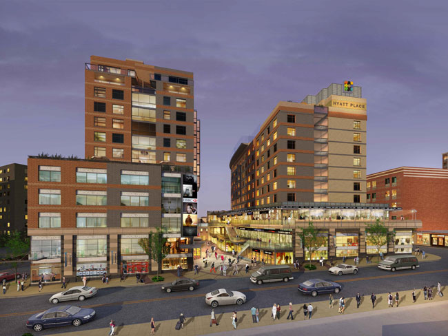 One Fulton Square is a mixed use multifunctional real estate development project, covering an area of about 330,000 square feet. The main building includes a nine-storey-high Hyatt Place and a twelve-floor finely decorated high grade residential condominium, both of which have space for commerce at the bottom. The underground parking with the entrance on Roosevelt Avenue can offer 306 parking spaces. The hotel in this development project includes a roof-top indoor swimming pool and barbecue and party club. The other building includes retail, office and hotel condominiums. Types of the hotel condominiums contain one room, two rooms and three rooms.